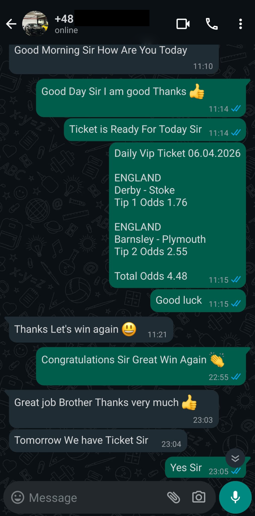 All tips are sent out by Email or WhatsApp. Equally important, buying a ticket from us is the same that when you buy a product too. In addition, you send us proof for verification and next you get your ticket immediately. Usually at the morning time on match day but sometimes even earlier. |